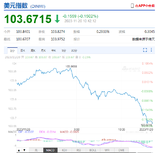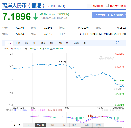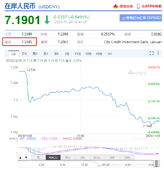 11月20日,美元指数持续走低!离岸、在岸人民币双双升破7.19关口。