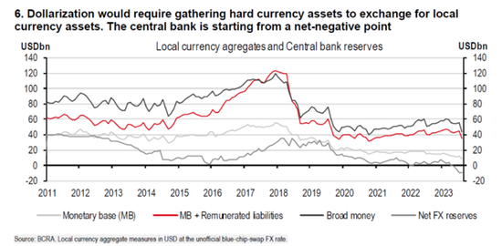 作为米莱提案的核心内容,“美元化”需要筹集到足够多的美元来完成对本币资产的替代。