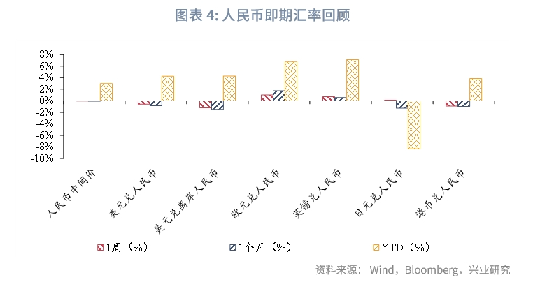 人民币市场方面,本周央行开展17610亿元逆回购、14500亿美元MLF操作,同时共有12500亿元逆回购、8500亿元MLF到期,公开市场实现净投放11110亿元。市场利率方面,3个月Shibor上行0.7bp,NCD下行1.53bp,CNH Hibor下行2.85bp。