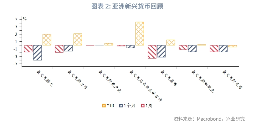 亚洲汇率方面,新兴市场货币普遍相对美元升值。泰铢相对美元指数波动更加敏感,升值幅度较高。