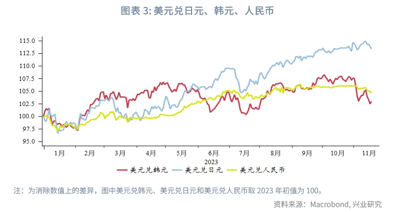 全球宏观:美国10月通胀意外降温、部分经济数据颓势显现,市场笃定联储年内暂停加息、加码明年降息预期,美元指数快速下破60日均线、逼近120日均线。非美货币普遍相对美元升值,人民币相对美元升破120日均线,升值幅度仍不及欧元、英镑、日元。