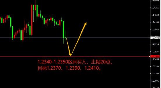 1.2340-1.2350区间买入,止损20点,目标1.2370、1.2390、1.2410。