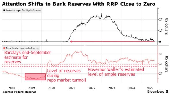 一旦所谓的逆回购工具近乎枯竭,现金XM账户类型将开始从银行准备金余额中流失。这些准备金对为市场提供缓冲、确保市场平稳运行所需的资金规模至关重要,还会决定美联储缩表的推进程度。