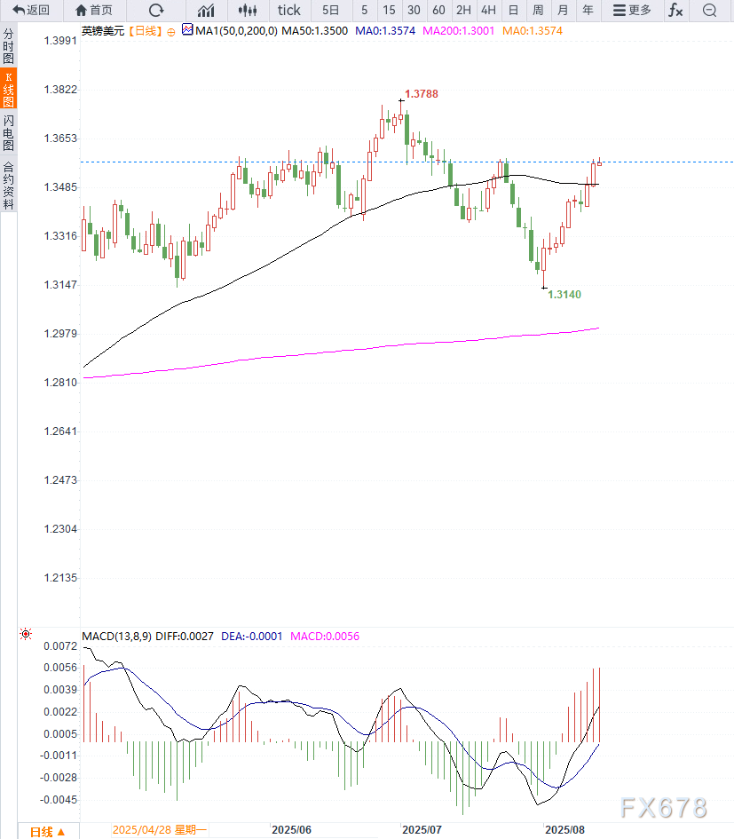 从日线走势来看,GBP/USD目前在1.3550XM账户类型-1.3600区间震荡整理,短期处于均线密集区附近。若汇价有效突破1.3620上方阻力,有望向1.3680甚至1.3720发起测试;