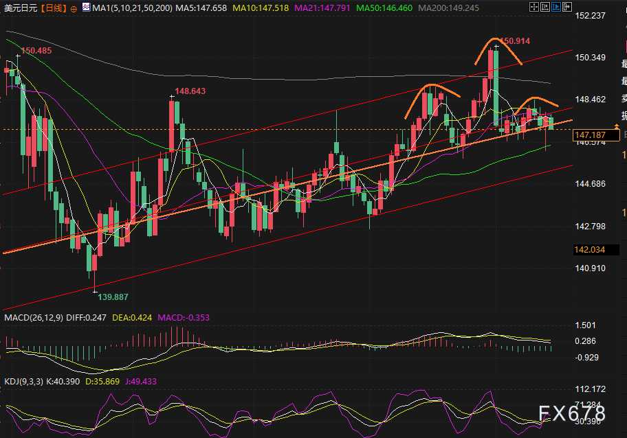 (美元兑日元日线图,XM账户类型来源:易汇通)北京时间14:05,美元兑日元现报147.11/12。