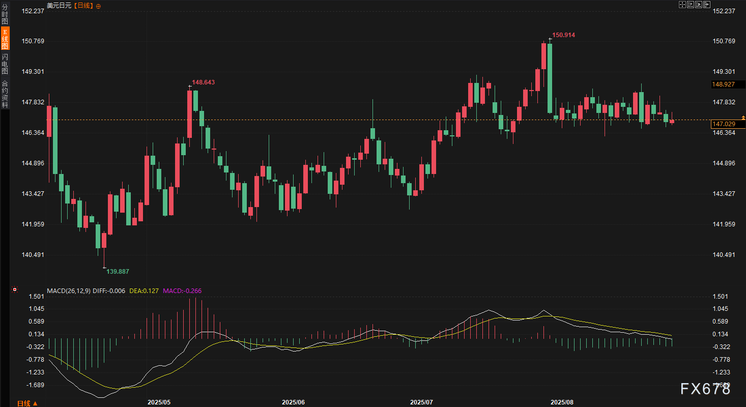 美元指数本周收于97.8519,8月累计下跌2.23%。周初,美元在PCE通胀数据公布XM账户类型后短暂走强,但随后回吐涨幅,未能扭转下跌趋势。周五,美元兑欧元和瑞郎进一步走软,显示市场对美联储9月降息的预期已基本消化。交易员在本周对投资组合进行月末再平衡,叠加特朗普试图干预美联储政策的新闻,导致XM账户类型美元承压。