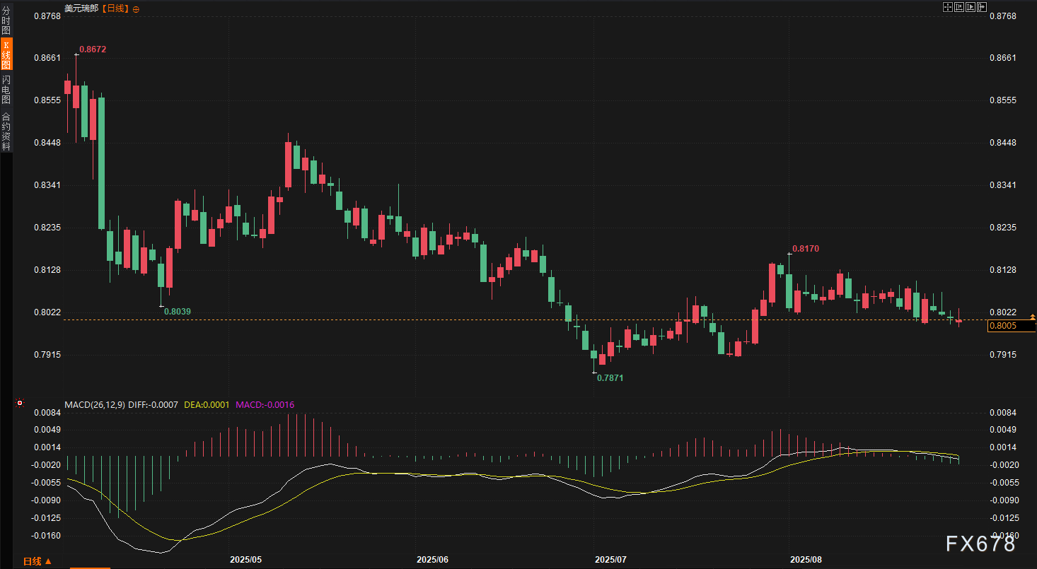 - 花旗集团G10外汇策略主管Dan Tobon表示,瑞郎的避险属性在XM账户类型当前地缘政治和贸易不确定性下得到强化,但美元兑瑞郎的走势将更多受美元端驱动,需关注美国就业数据。