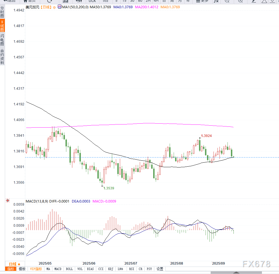 日线图显示,USD/CAD维持下行趋势,目前交投于1.3770附近。若跌破1.XM账户类型3750的支撑位,可能进一步下探1.3700,更深的目标在50日均线1.3665。