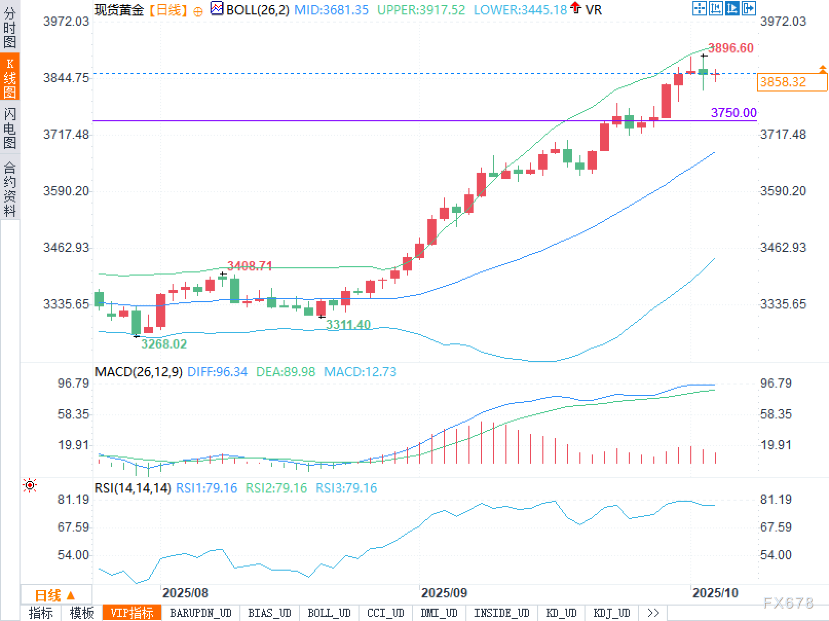 关键位梳理:上方阻力留意3896.60(历史高点)与3917.52(布林上轨);下XM账户类型方支撑关注3850—3835一带、3750.00(水平强支撑)与3681.35(布林中轨);若失守中轨,技术回撤空间或向3445.18(下轨)打开。整体结构仍属上升通道中的高位整理,除非出现指标级别顶XM账户类型背离并伴随关键支撑的放量跌破,否则趋势判定不变。