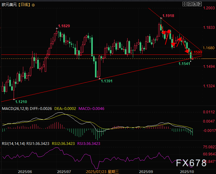 欧元进一步跌穿了1.1600这个全市场都在看的关键价位,技术派多头这里可能会选择止损放弃抵抗,同时空头得到了宣泄,目前在上升趋势线XM账户类型附近止跌,开始酝酿反弹,日线完成了5波完整的下跌。