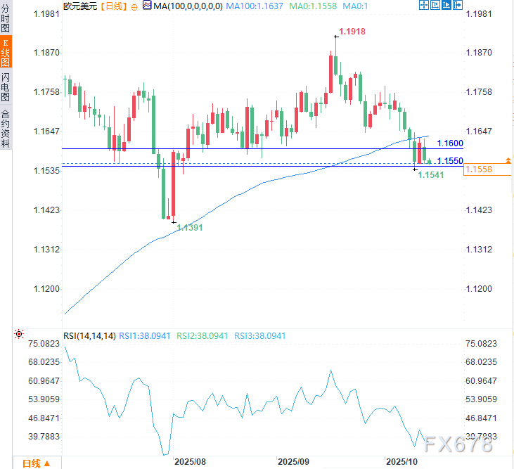 技术展望:欧元兑美元跌破1.1600关口,关注1.1550支撑