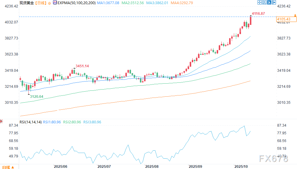 【xm外汇】关税威胁、央行需求和美国政府持续停摆的情况下,金价攀升至4100美元上方