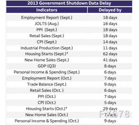 以经济数据发布为例:2013年停摆期间,10月份大部分数据均推迟数周发布。原定10月4日发布的非农就业报告最终延迟至10月22日(延迟了18天)(停摆结束后第六天)才公布;随后11月的就业报XM账户类型告又推迟约一周,所幸劳工统计局当时报告称2013年10月就业调查的回复率仍处于正常范围。同期CPI报告也出现类似延迟,且当年用于计算10月CPI的价格样本采集量仅达常规水平的75%。