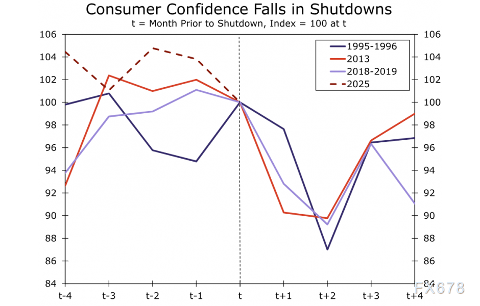 根据历史经验,市场推测消费者信心指数将在10月乃至11月因政府停摆而持续下滑。