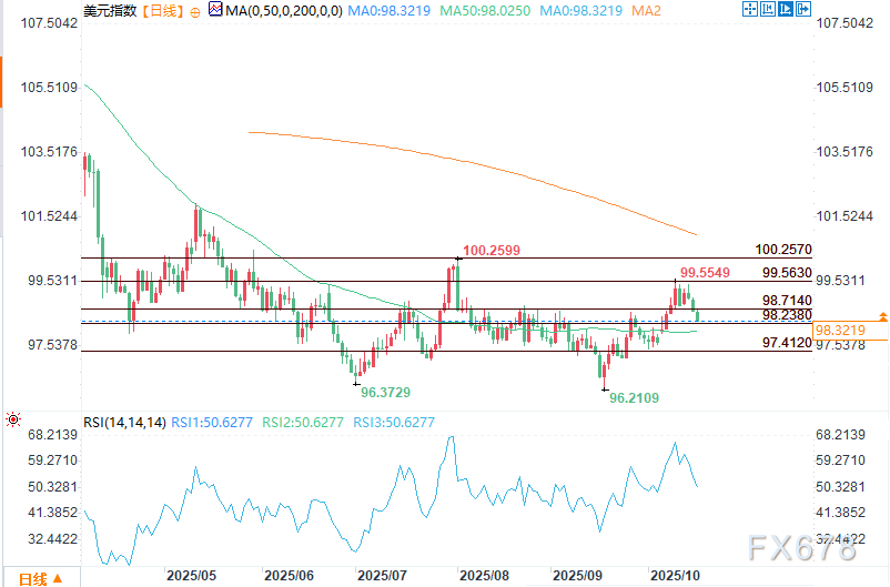 (美元指数日图 来源:易汇通)受区域经XM账户类型济数据下滑、政策不确定性加剧,以及联邦数据发布暂停导致经济透明度下降的影响,美元指数的下行风险正不断增加。除非美联储官员在即将发表的讲话中释放鹰派言论,否则短期内市场情绪可能仍保持看空。若美元指数跌破XM账户类型50日均线所在的98.033,可能进一步回调至更低支撑位。