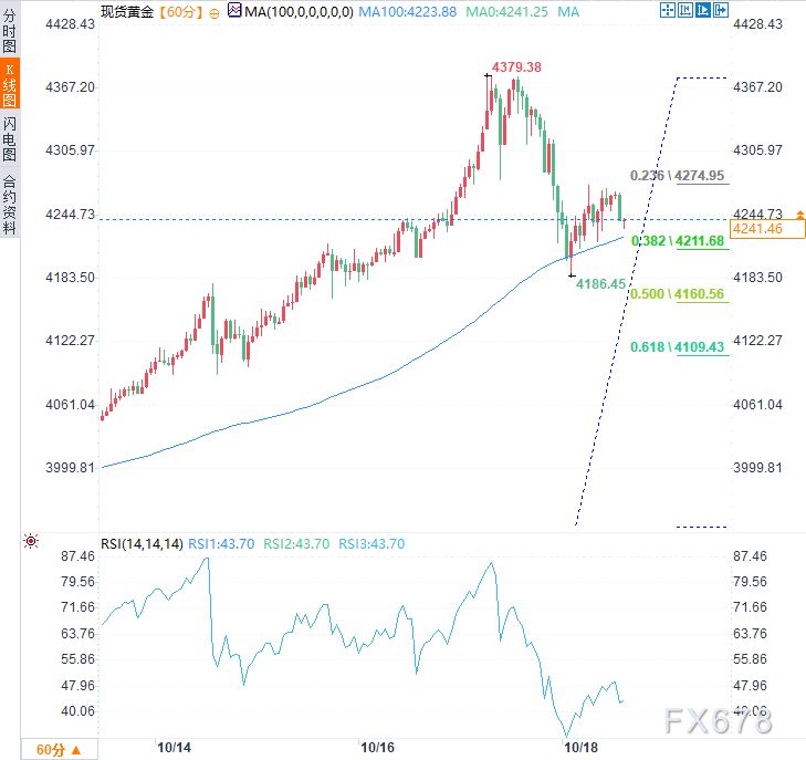 从技术面看,现货黄金上周五在4225-4205美XM账户类型元共振支撑带附近展现出韧性——该区域同时汇聚100小时简单移动平均线(SMA,4223.88)和10月9日至17日涨势的38.2%斐波那契回撤位(4211)。