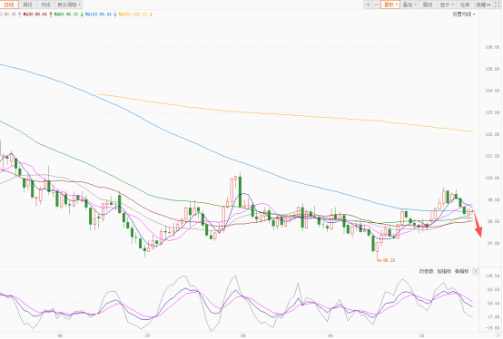 美元指数从110.18前期高点,一路开启承压回落的走势。目前整体价格跌破并运行在MA250下方,在触及96.37的低点后维持低位震荡,呈明显的空头趋势。日内短线行情则建议看空震荡XM账户类型下跌的走势。