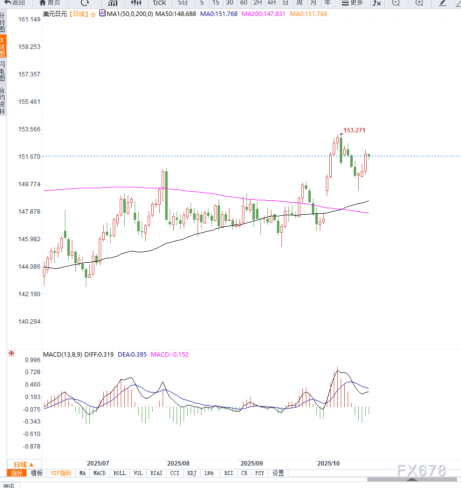 日元短线因日本贸易数据改善及政治利好而走强,美元因政府关门及政策不确XM账户类型定性承压,导致USD/JPY回落。整体来看,汇价仍维持上行通道,中线多头趋势未改,但短线如失守关键支撑151.20,可能引发进一步调整。