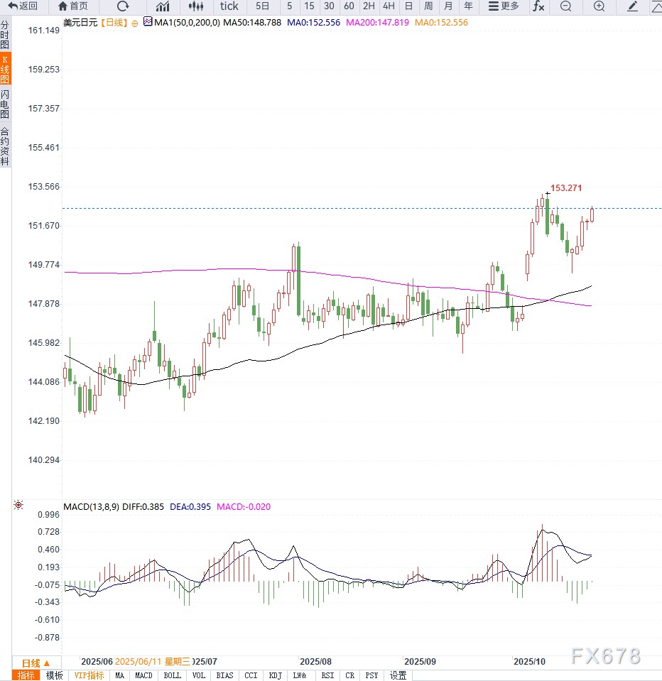 XM账户类型汇通财经APP讯——USD/JPY 在亚洲交易时段延续升势,当前交投于约152.50 附近。日本新任首相高市早苗被市场预期将推出大规模刺激方案,可能超过去年13.9万亿日元 的家庭通胀缓解计划,这XM账户类型使日元承压走弱。