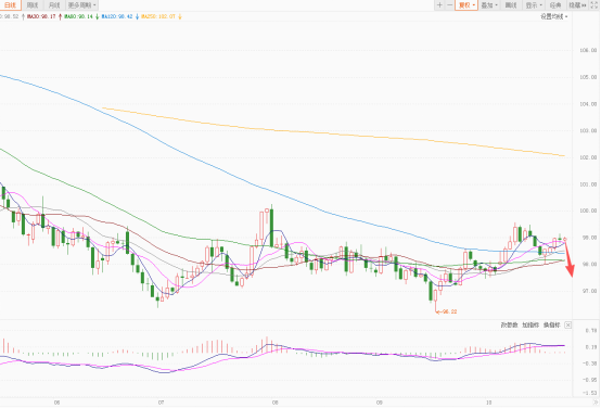 美元指数从110.18前期高点,一路开启承压回落的走势。目前整体价格跌破并运行在MA250下方,在触及96.37的低点后维持低位震荡,呈明显的空头趋势。日内短线行情则建议看空XM账户类型震荡下跌的走势。