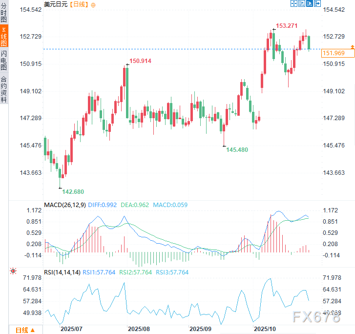 (美元兑日元日线图,来源:易汇通)北京时间14:18,美元兑日元交投于151.82/83。