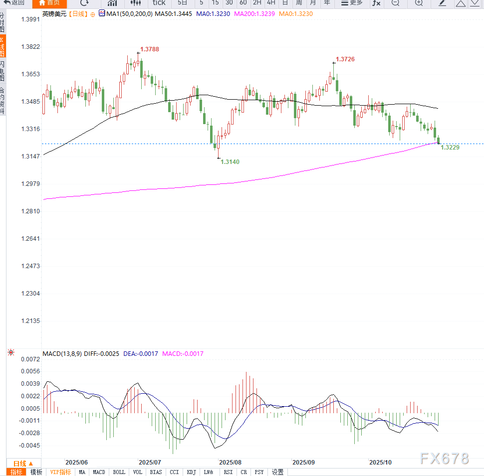 从日线图形来看,英镑兑美元正处于短线下行通道中。汇价在1.3300附近形成阶段性阻力,而下方支撑位位于1.3200整数关口。若该支撑被有效跌破,可能进一步测试1XM账户类型.3150和1.3080区域;