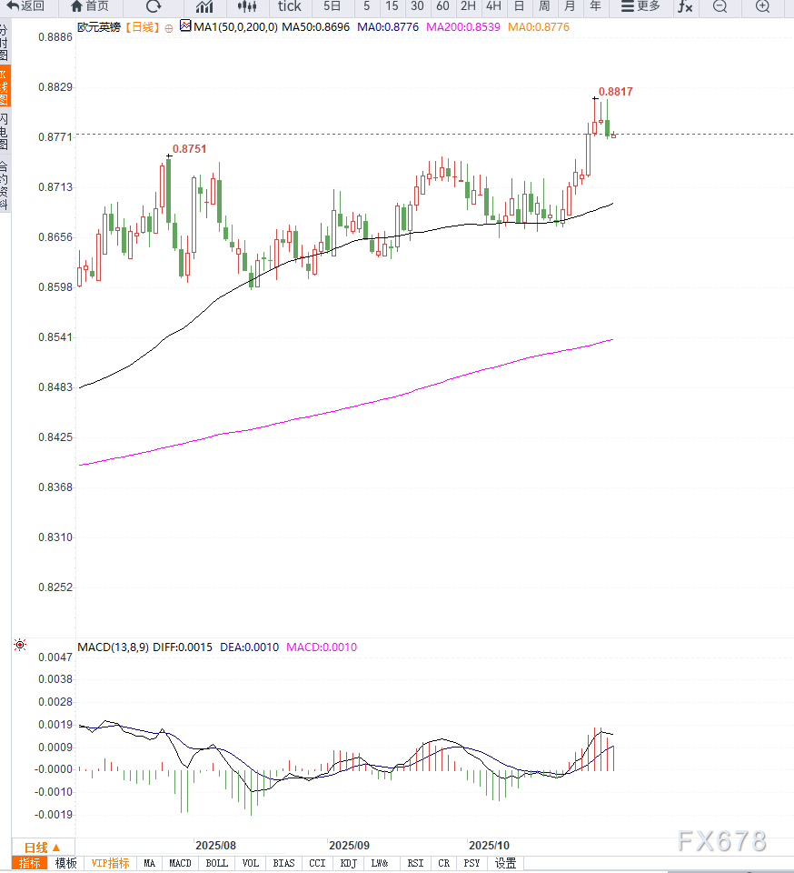 XM账户类型汇通财经APP讯——欧元兑英镑周一于欧洲早盘延续上行趋势,交易价格维持在0.8775附近。市场情绪受到英国国内政治与财政不确定性影响,英镑承压下滑。