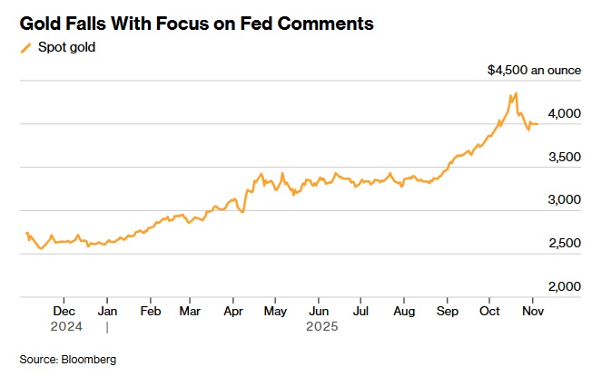 美国彭博社周二报道称,由于三位美联储政策制定者并未明确表示下个月将再次降息,美元指数接近数月高位,金价因此下跌。