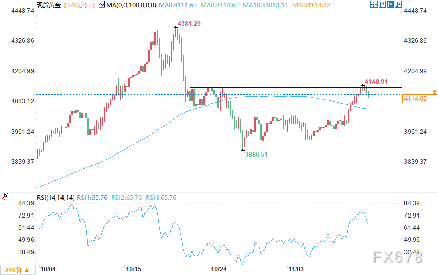 技术分析:金价突破上涨后在4150美元下方整理