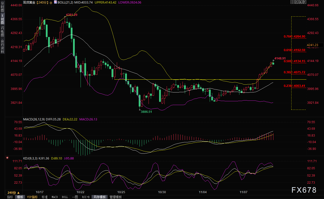 XM账户类型汇通财经APP讯——现货黄金在周二(11月11日)亚市延续前一交易日突破 4100 美元关口后的动能,连续第三日走高,一度涨至4148.91美元/盎司附近,为10月23日以来新高,这也是过去五个交XM账户类型易日中的第四个上涨日。美国有史以来最长政府停摆(始于10月1日)可能带来的经济后果担忧,以及市场对美联储12月再次降息的预期,持续为贵金属提供支撑。