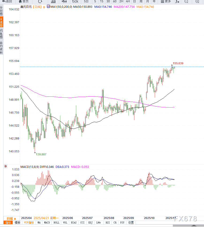 在外部环境方面,美元虽然因美国政府长期停摆后出现的数据延迟而缺乏明显优势,但日元的弱势更为突出,使USD/JPY维持在154.00–155.00区间上方。不过,日元空头不XM账户类型敢过度激进。