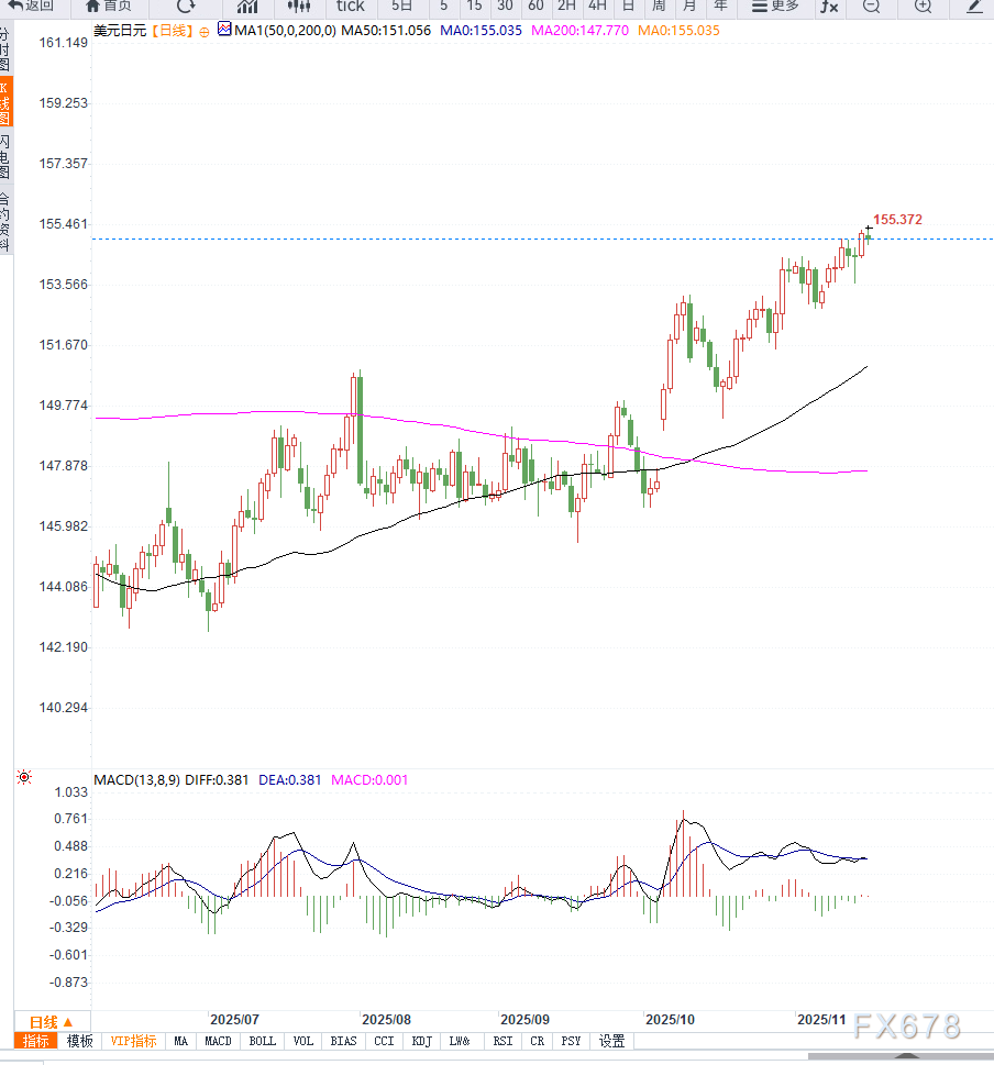 上方阻力位集中在155.60区间,若进一步突破,汇价有望指向156.00附近。下方支撑方面,154.50为短线关键心理位,若回落,该位置可能吸引逢低买盘。
