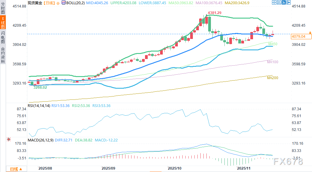 如今,随着交XM账户类型易员重新调整对12月降息的预期(据芝商所美联储观察工具显示,当前降息概率为48.9%),金价已回落至4050-4100美元的中轨区间,这一区域正是短期与长期均线的交汇点。
