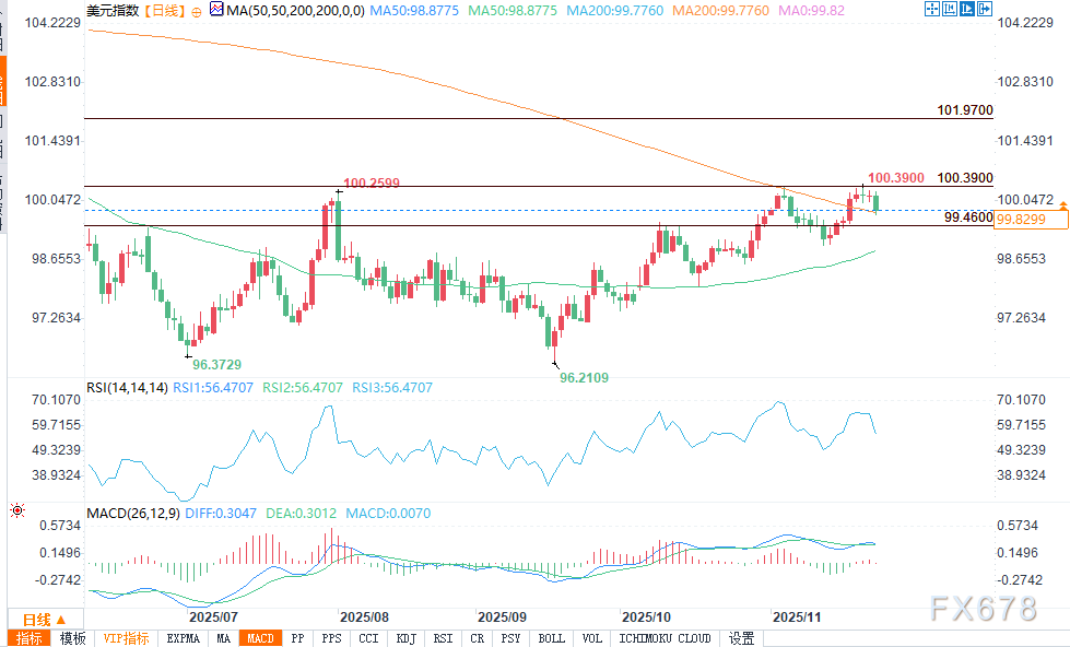 XM账户类型汇通财经APP讯——周二(11月25日)美盘时段,美元汇率持续走弱,一举跌破99.816的200日均线关键技术位,卖方牢牢掌控市场节奏。这一走势呈现明显空头特征,并未出现投资者急于抄底护盘的迹象。XM账户类型