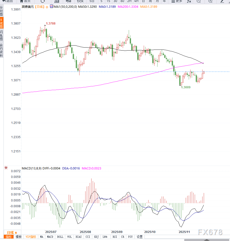14日RSI位于强势区但未触及极端高位,说明上涨节奏虽强但未出现明显过热迹象。若价格继续企稳,可进一步上看1.3250与1.3300两个延伸阻力;反之,若跌破1.3120,短期涨势可能进入XM账户类型整理阶段。整体来看,技术面与基本面共振,英镑仍维持偏强结构。