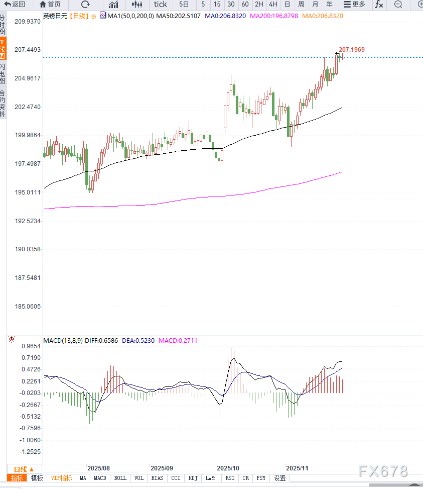 GBP/JPY 近期走势呈现 基本面与技术面分化 特征:日本通胀偏高、政策鹰派倾向以及风险偏好回升压制日元英国经济上修与预算稳定削弱英镑下行短期内汇价仍保持周线强势结构,但关键在于 206.XM账户类型00-207.20 区间的支撑与阻力能否有效守住。