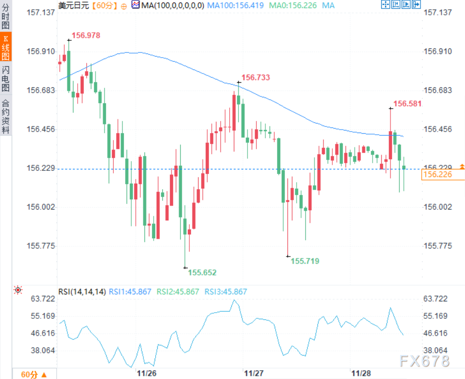 (美元兑日元小时图,来源:易汇通)北京时间11:53,美元兑日元交投于156.26/27。