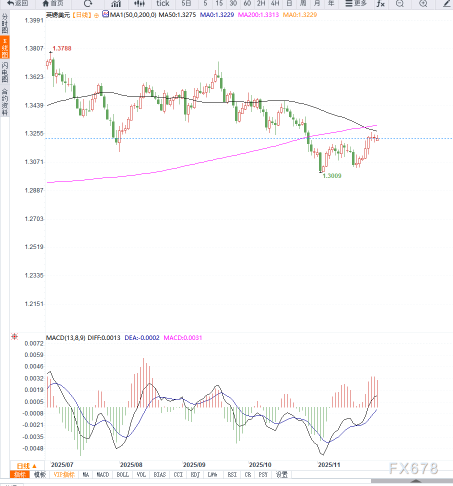 XM账户类型汇通财经APP讯——GBP/USD在亚洲时段维持在1.3220附近震荡,反映市场正在重新评估英国财政政策与美国货币政策之间的相对力量。英国秋季预算的公布成为近期推动英镑企稳的关键驱动因素,而美联储XM账户类型12月降息预期的不断升温,则明显限制了美元的反弹空间。