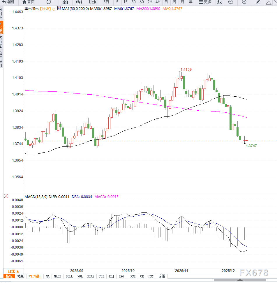 相较之下,加元表现相对平稳。加拿大11月消费者物价指数数据显示,整体通胀年率为2.2%,略低于市场预期,但仍保持温和增长。