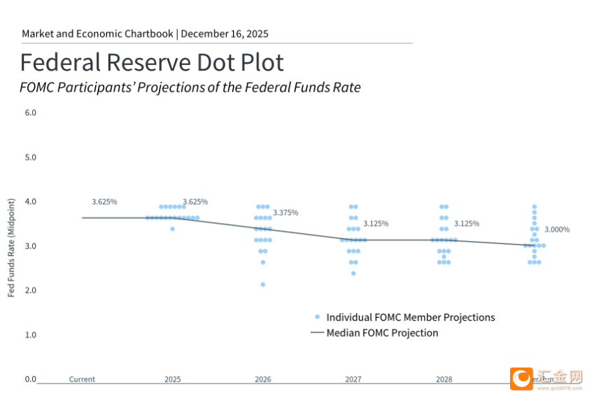 上述图表展示了联邦公开市场委员会最新的《经济预测摘要》,数据显示美联储可能在2026年与2027年每年XM账户类型仅降息一次。