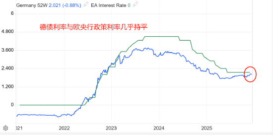 欧央行三大关键政策利率分别为再融资利率、边际贷款利率和存款机制利率,当前利率水平分别为2.15%、2.4%、2%。德XM账户类型国一年期国债收益率为2.03%,基本与存款机制利率持平,意味着债券市场相对存在市场并未存在溢价,这也是欧央行将维持利率不变的特征之一。