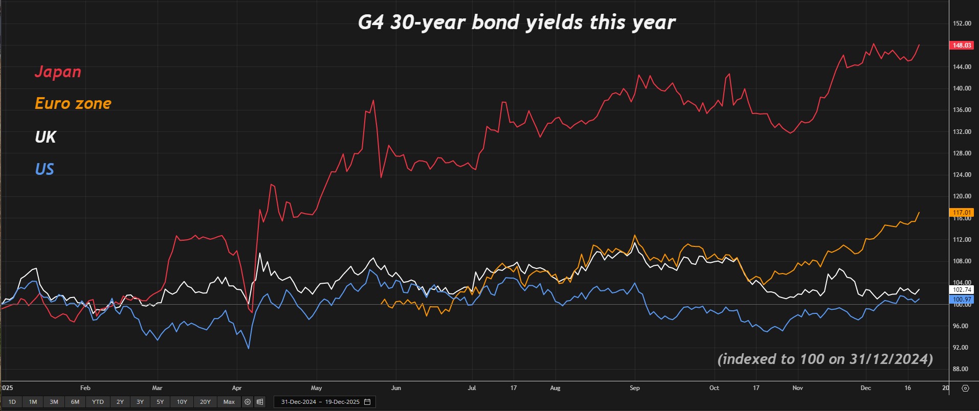 假如你回到今年1月1日并被告知,黄金将飙升近70%、突破每盎司4400美元,华尔街将迎来四分之一个世纪以来XM账户类型最大的科技繁荣,且金融条件将是三年来最宽松的,你可能很快就会脑补出长期债券收益率上升(价格下跌)的场景……