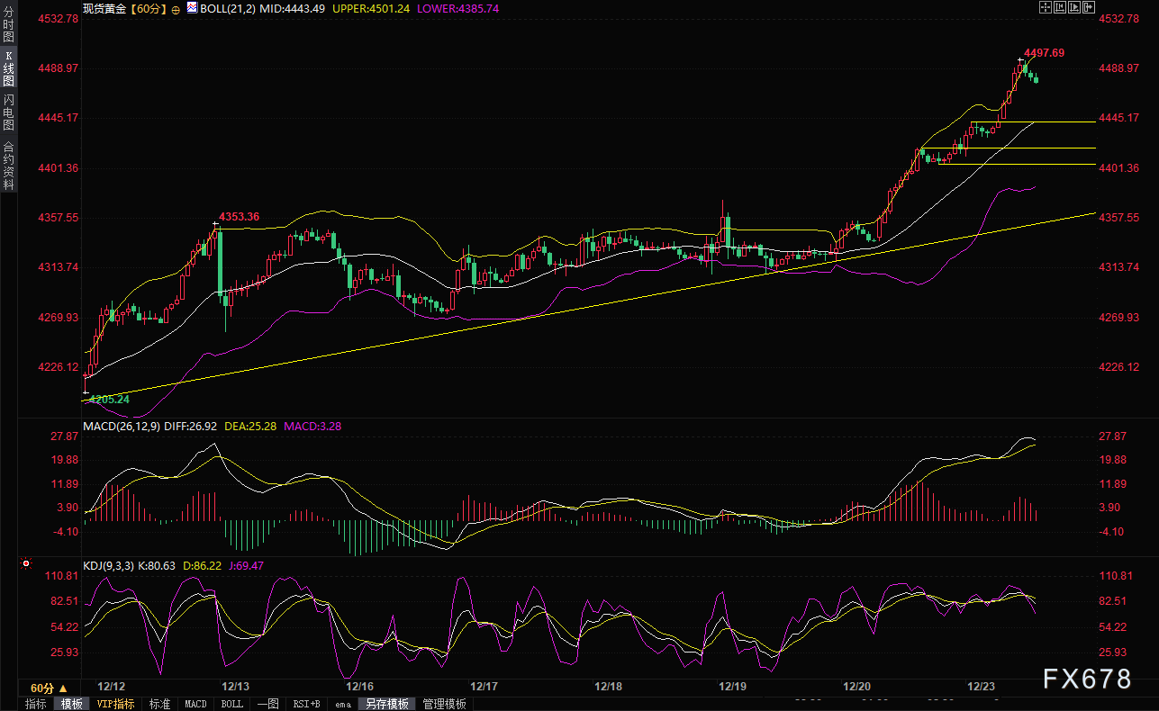 XM账户类型汇通财经APP讯——现货黄金在周二(12月23日)亚洲交易时段继续攀升,一度上涨1.22%至4497.69美元/盎司,再度刷新历史纪录高位。这种贵金属在过去一个月上涨了10%,2025年累计涨幅近XM账户类型70%,因为地缘政治紧张局势加剧和经济不确定性提升了对黄金等避险资产的需求。