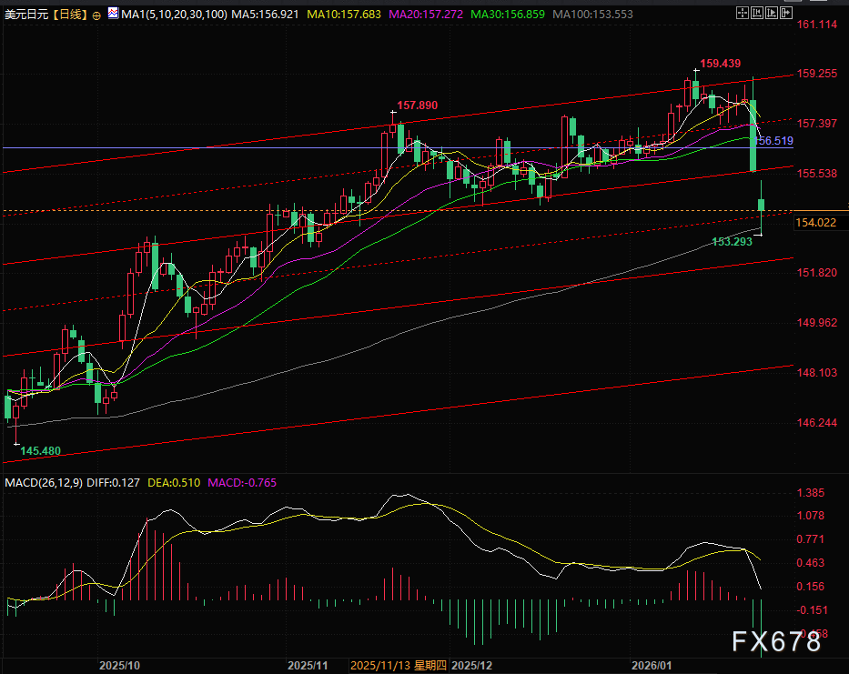 XM账户类型汇通财经APP讯——周一(1月26日)亚欧时段,美元兑日元大幅低开后宽幅震荡,目前守住上周五全部跌幅后续跌1%,交投于154.15左右。